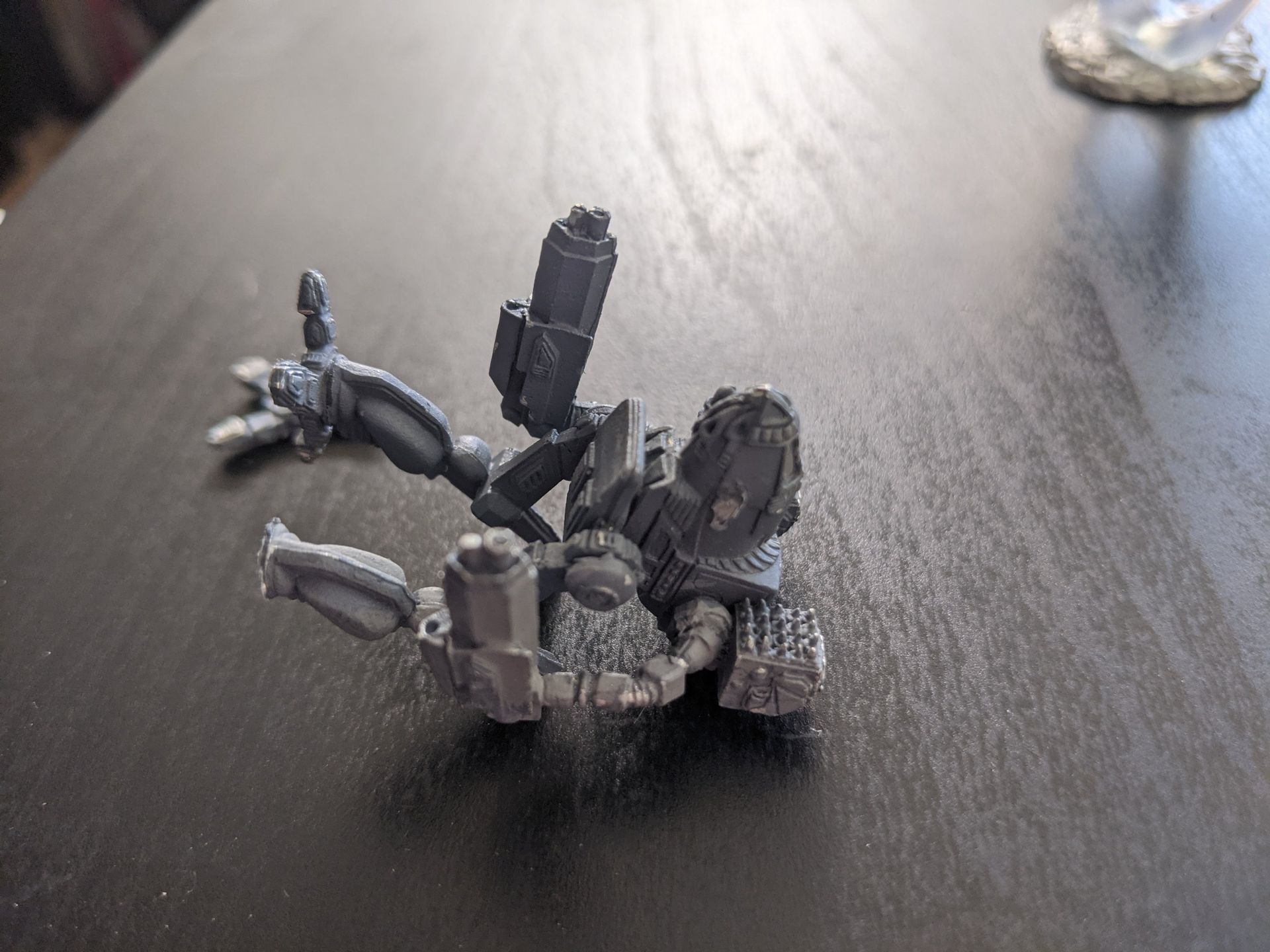Next is the assembly of the Black Knight. I pulled up a YouTube video detailing how to put it together, but the moment I saw them putting the arms on before the arm mounted cannon I turned it off. Here is my step-by-step: