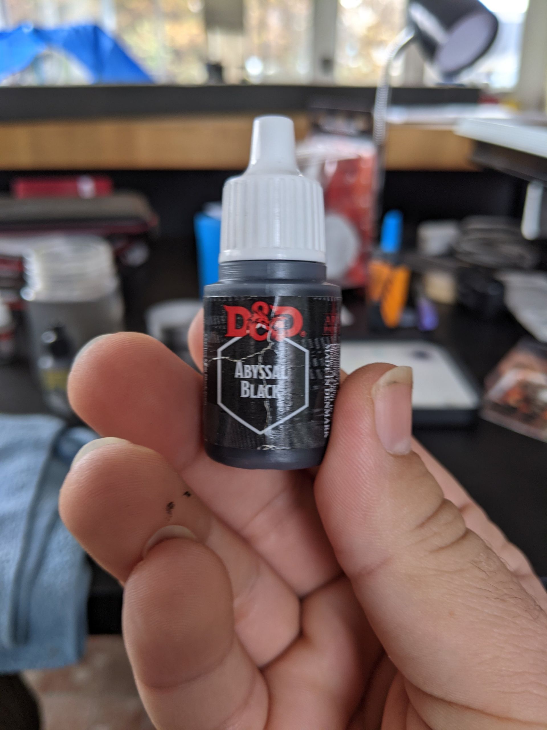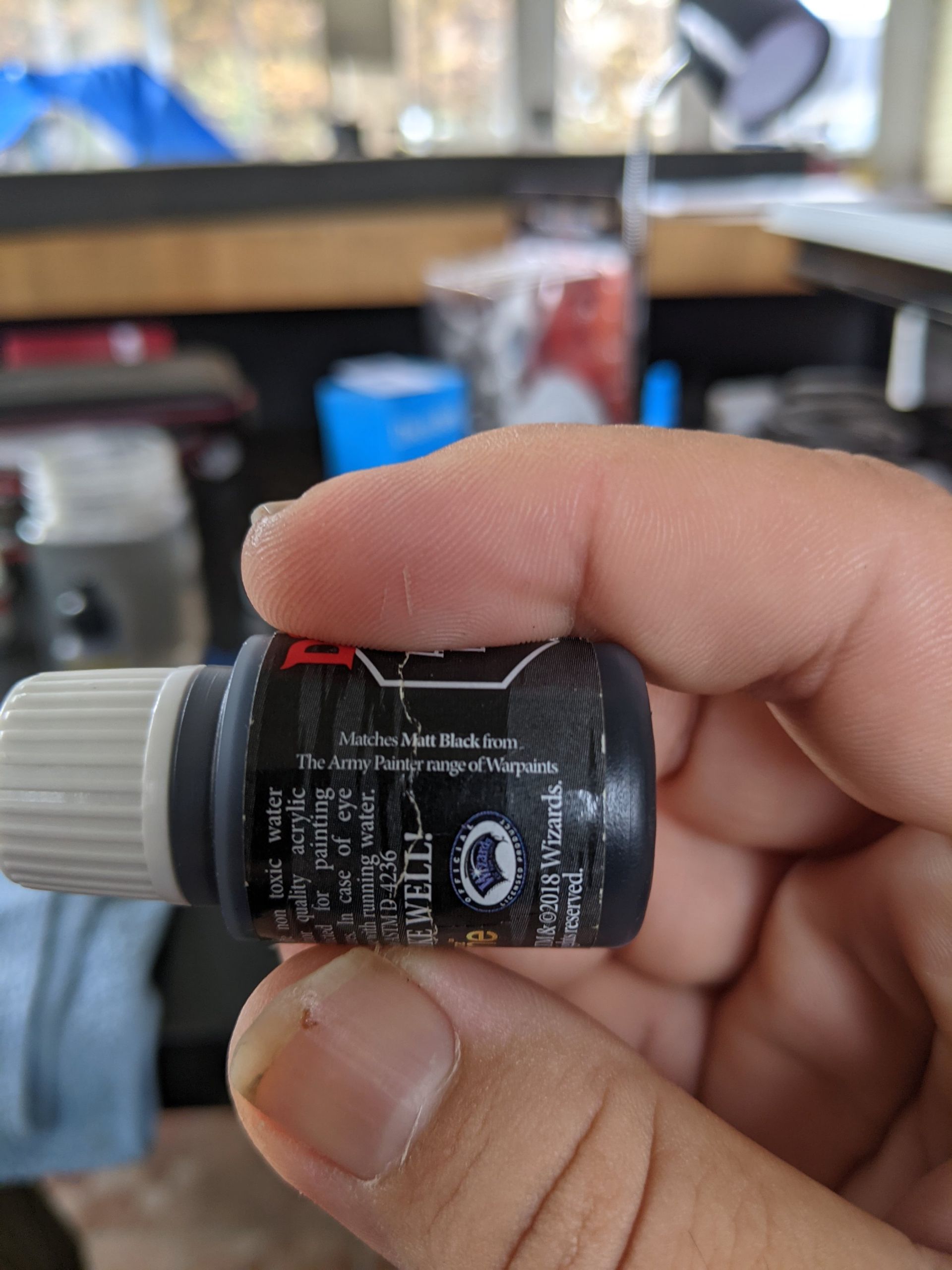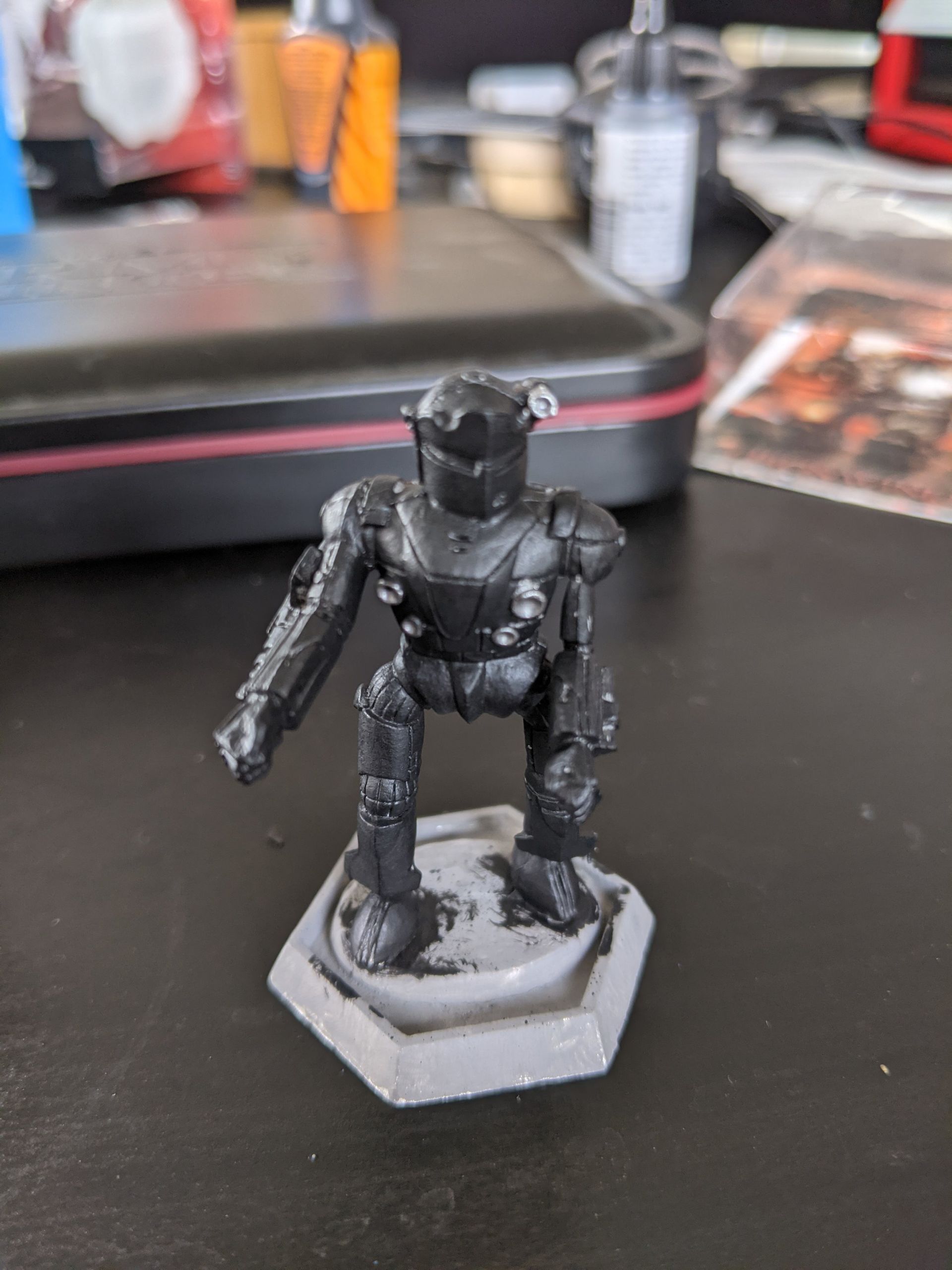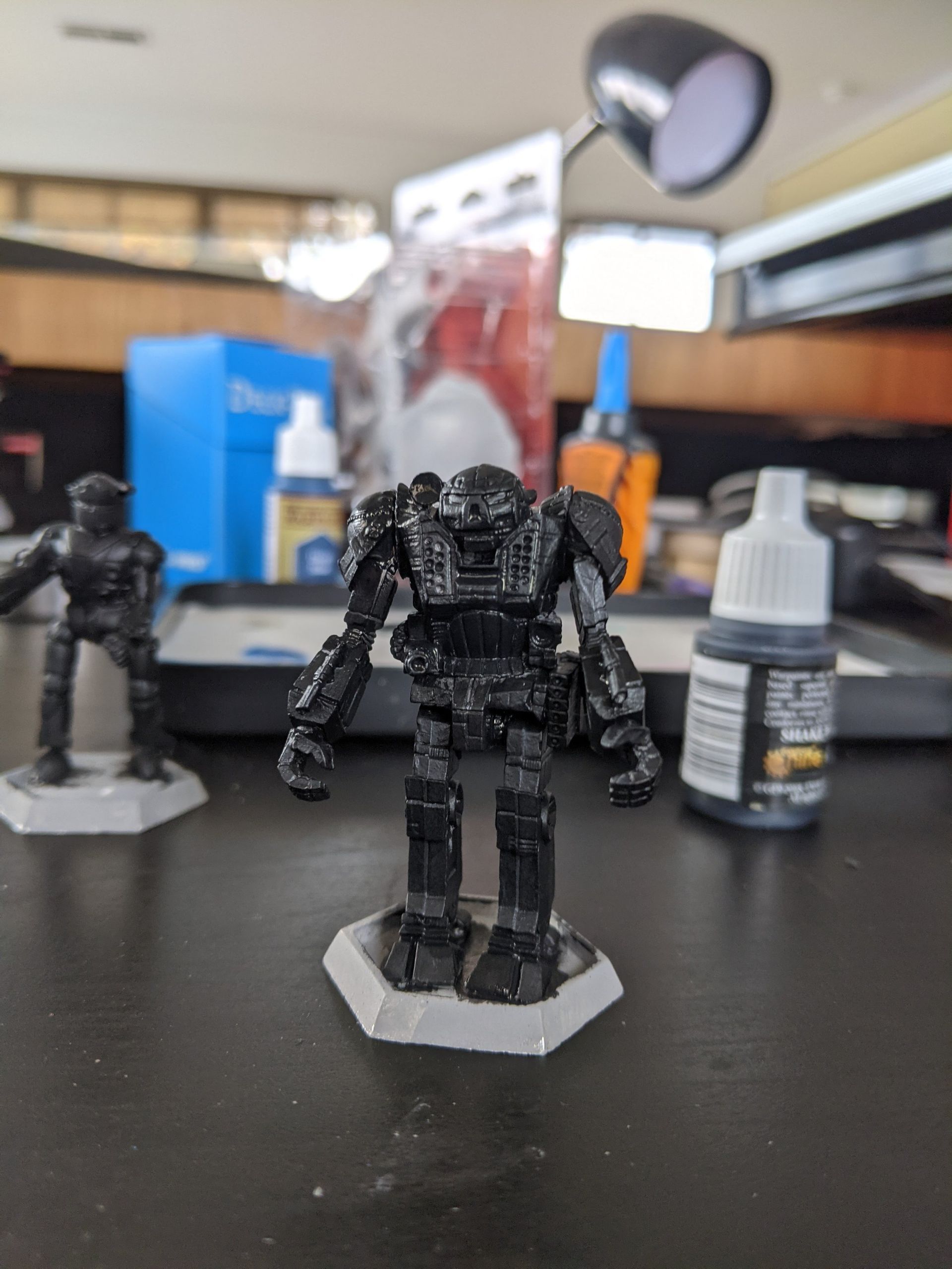 As you can see, I was able to get his base coat done as well as start working on the gunmetal I used for his weapons.