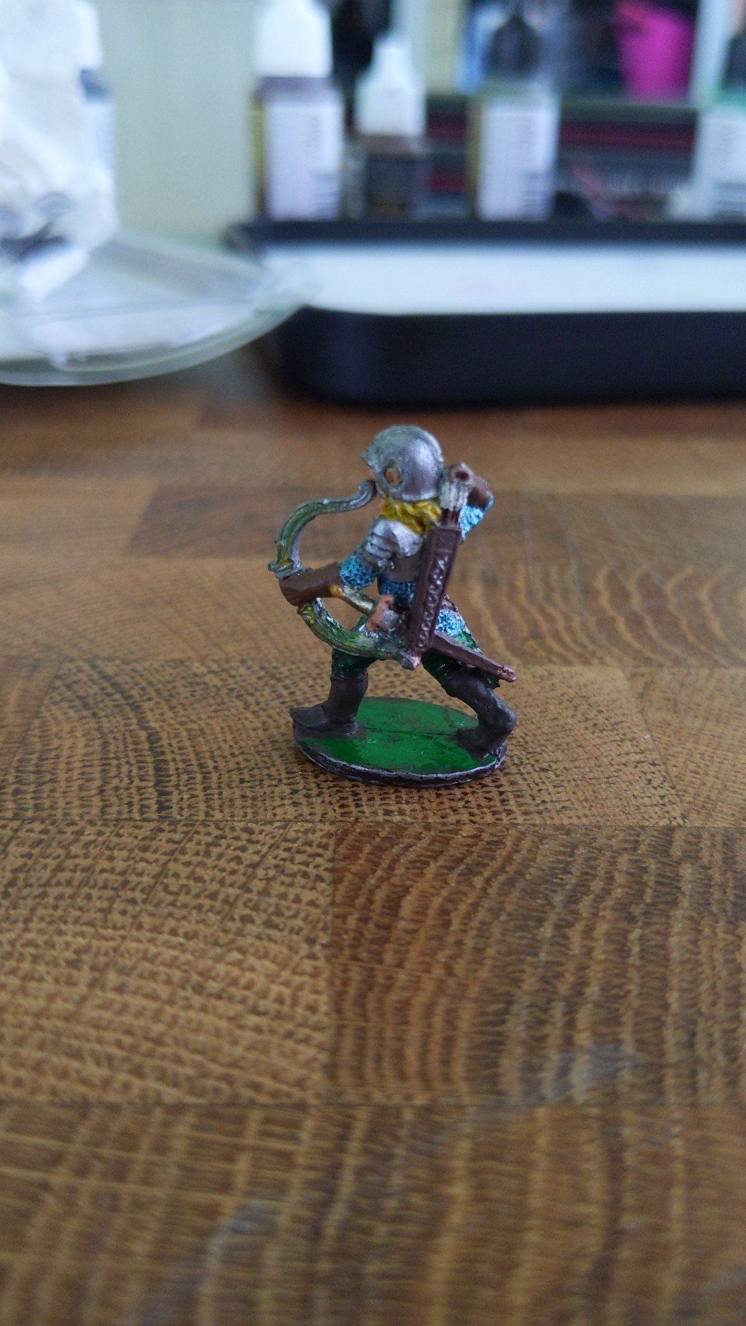 Also, you may notice that I painted the filigree on his quiver a nice silver. I used a regular brown for the shaft of the arrows, contrasting with the darker brown of the quiver.