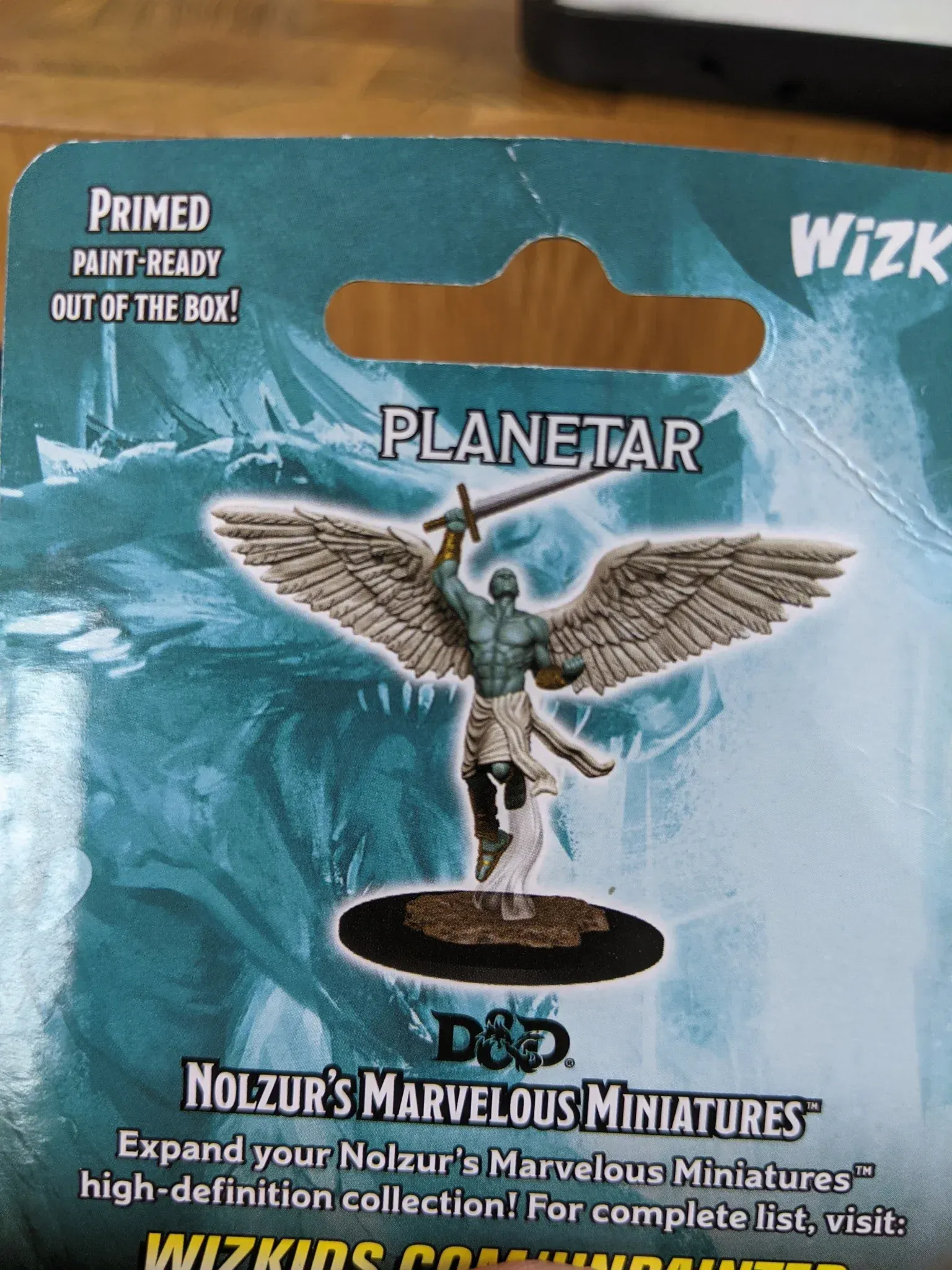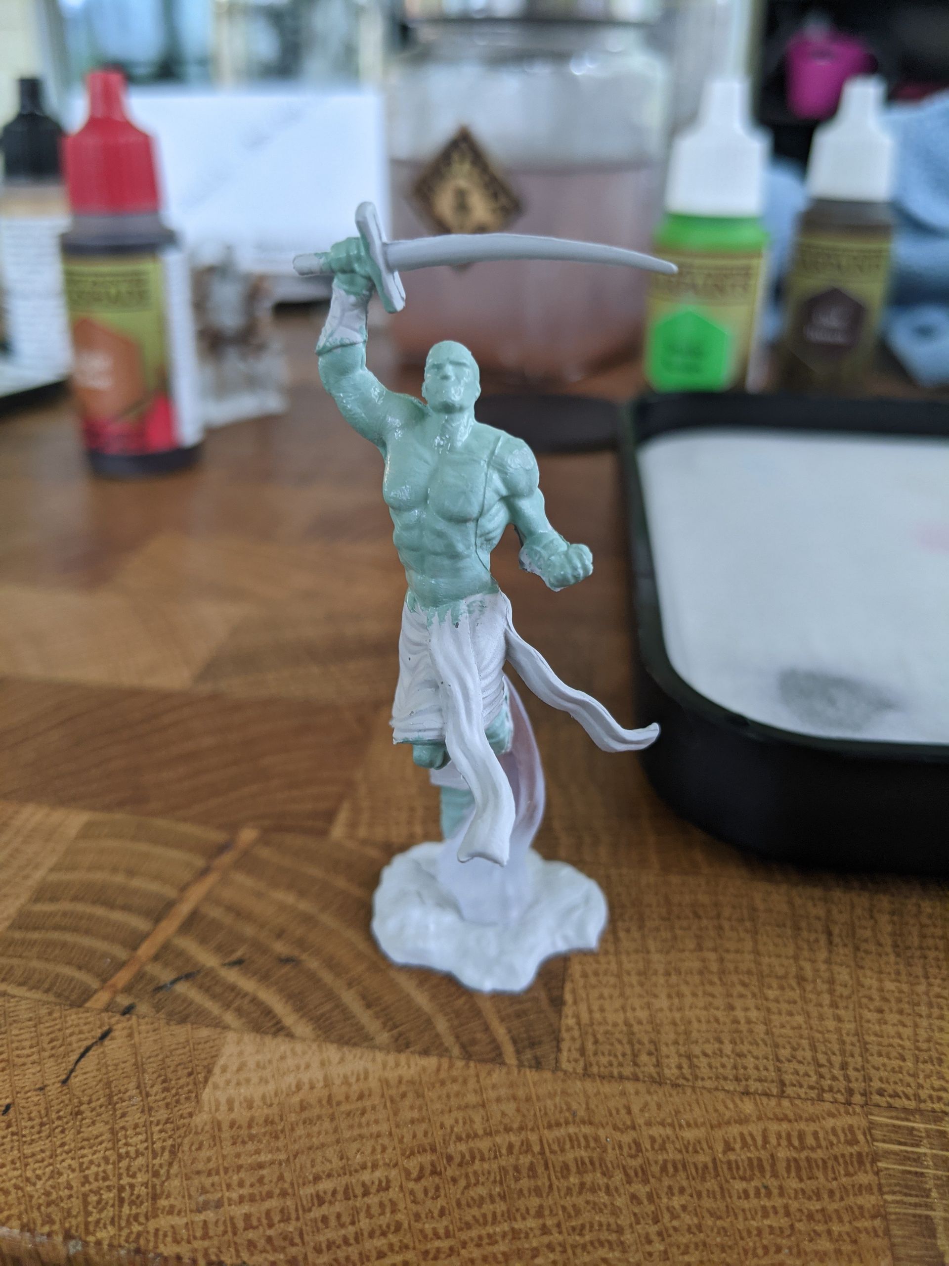 This guy was a little bit trickier. As you can tell from the picture on the back of the box, his skin is blue with a hint of green. In order to get that perfect coloring, I went ahead and combined Ice Storm with Snake Scales at a rate of 4:1 (Ice Storm being heavier). I think I found a nice balance, for me at least, that gets me what I want. Taking a look in the Dungeon Master’s Guide, the planetar has a slightly more greenish hue. I decided to go that route.