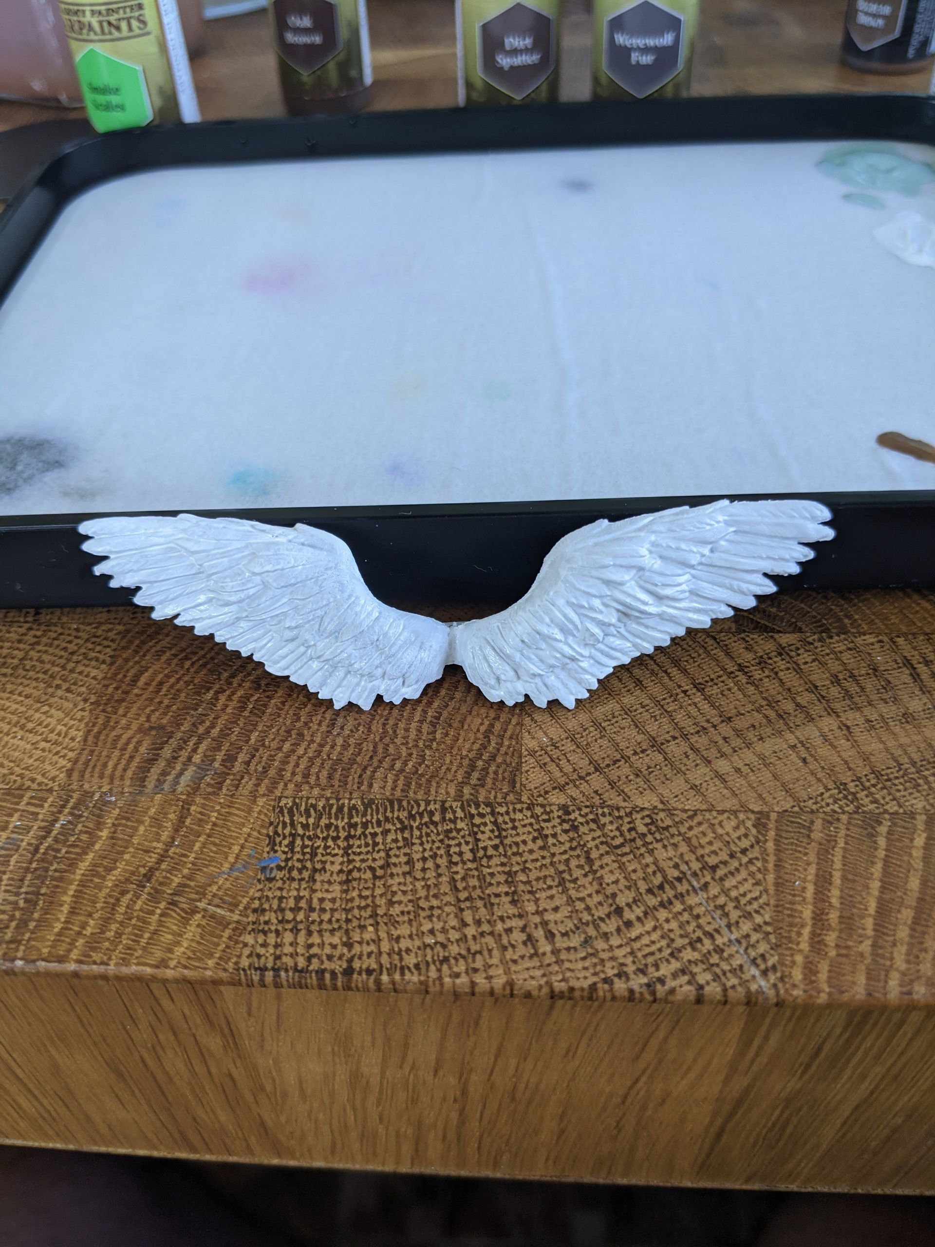 Again, the humidity is killing me, so I can only paint one side of the wings. I was actually pretty grateful that the wings do not come pre-attached to the miniature, allowing me to paint them separately and without problem. Of course, they will be attached upon completion of painting of the miniature.